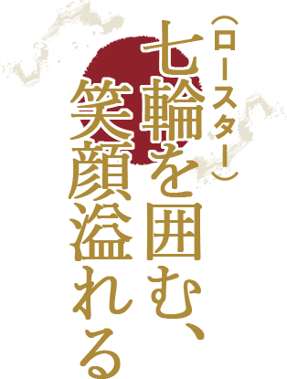 みんなで七輪(ロースター)を囲めば 自然と笑顔と会話が 溢れ出します。 親密な時と空間を ごゆっくりお過ごしください。